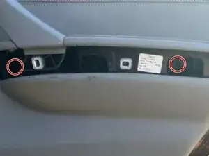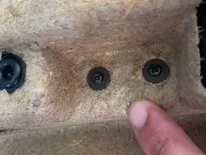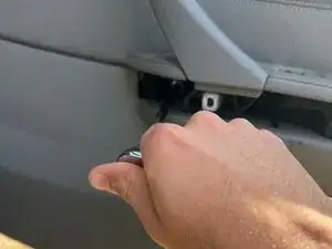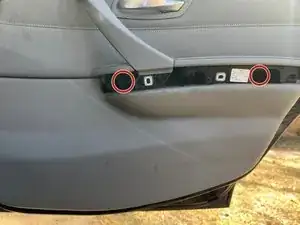 Используйте трещотку с приводом 1/4 дюйма и биту Torx T20 на удлинителе, чтобы выкрутить два болта слева и справа от двери, за местом установки серебристой накладки. Проще всего двигаться слева направо.