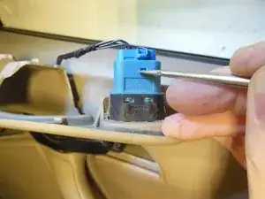 Отсоедините провода от корпуса ручки плоской отвёрткой, нажав вверх на фиксатор в пазу.