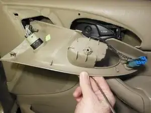 Вытяните тягу блокировки из кронштейна ручки и снимите сломанный кронштейн ручки.