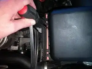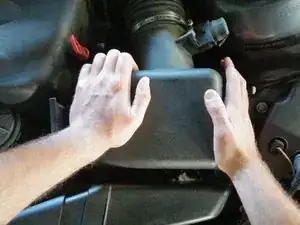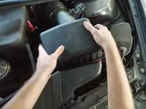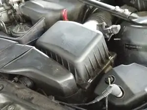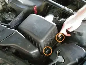 Будьте осторожны, не поднимайте и не изгибайте крышку слишком сильно! Открыть её можно только до определённого предела, так как она по-прежнему соединена с впускным патрубком и датчиком расхода воздуха; чрезмерное усилие повредит их.