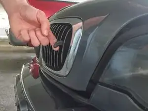 Подойдите к передней части автомобиля и потяните вверх за фиксатор, выступающий из решётки радиатора.