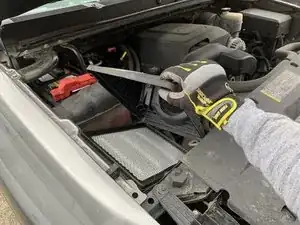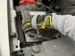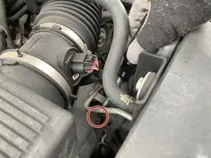 Крышка воздушного ящика все еще будет прикреплена к шлангу воздухозаборника. Однако этот шланг довольно гибкий, так что вы сможете поднять крышку достаточно, чтобы заменить воздушный фильтр.