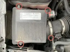 Крышка воздушного ящика зафиксирована четырьмя винтами Torx T25. Удалите каждый из них с помощью отвертки Torx T25.