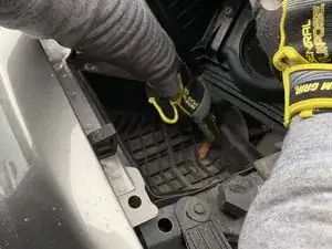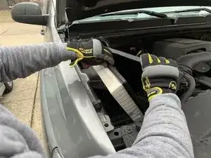 Передний правый винт слегка скрыт и может быть трудно доступен. Вам придется вставить отвертку между шлангами радиатора, чтобы добраться до него.
