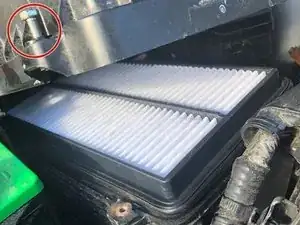 Воздушная коробка находится прямо за аккумулятором. Удалите четыре болта на 9 мм, удерживающих воздушную коробку.