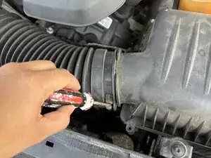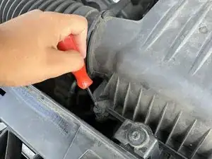 Используйте отвертку с плоским лезвием, чтобы ослабить хомут, крепящий вход воздуха.