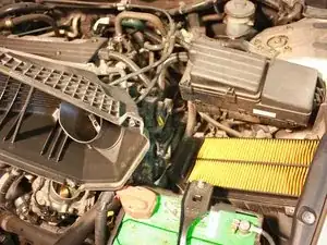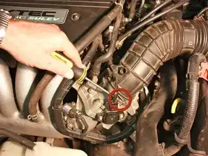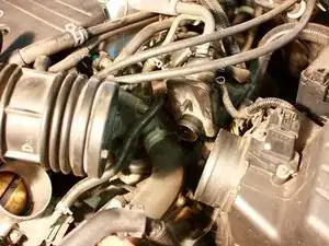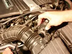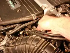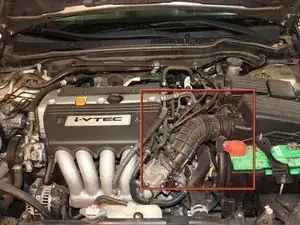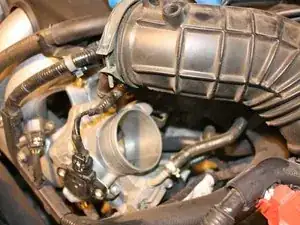 Когда винты будут ослаблены, полностью снимите воздуховод, аккуратно покачивая его, чтобы отвести от двигателя и корпуса воздушного фильтра.