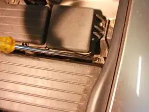 Найдите защёлку капота рядом с дверью водителя, рядом с подножкой слева.