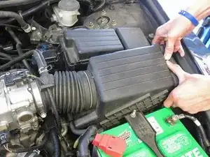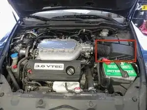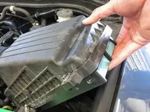 Найдите корпус воздушного фильтра. Он расположен справа от двигателя — это черный пластиковый ящик непосредственно над аккумулятором.