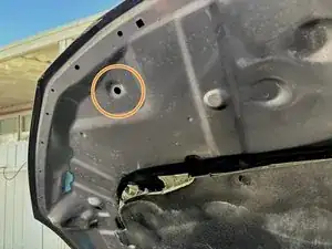 Удерживая капот одной рукой, найдите подпорный стержень капота.