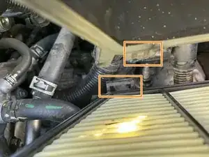 Осмотрите двигатель и найдите корпус воздушного фильтра в нижней правой части.