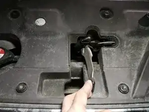 Чтобы не возникло трудностей с поиском зажима, ищите его в центре капота.