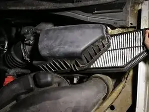 Отстегните три зажима, удерживающих крышку воздушного фильтра двигателя. (Третий зажим не виден на фото, но находится с другой стороны крышки.)