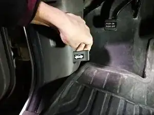 Вытяните рычаг открытия капота в ногах водителя, чтобы открыть капот.