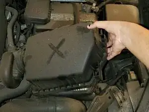 Откройте крышку корпуса воздушного фильтра двигателя, отжав две защёлки на правой стороне крышки.