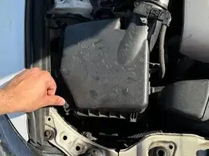 Найдите коробку воздушного фильтра двигателя, расположенную спереди и сбоку от двигателя.