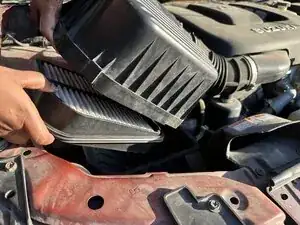 Снимите верхнюю часть корпуса воздушного фильтра двигателя.
