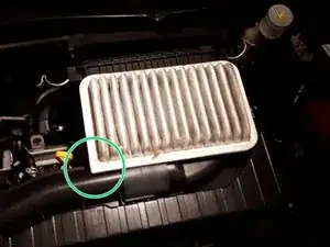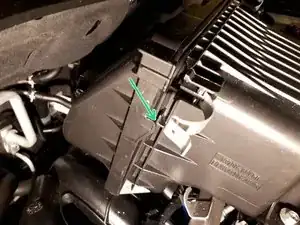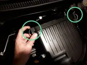 Отстегните оба защёлкивающих зажима, удерживающих корпус фильтра на впуске воздуха.