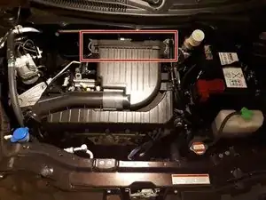 Корпус фильтра расположен за впуском воздуха.