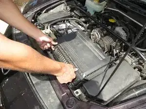 Откройте крышку воздушного фильтра пальцами. Воздушный фильтр теперь будет виден и начнет подниматься.