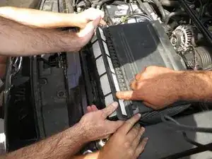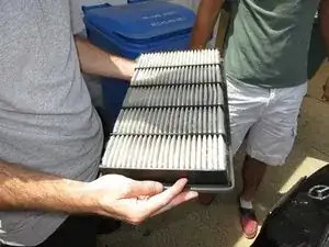 Осторожно вытяните весь воздушный фильтр из открытой крышки. Для удаления может понадобиться помощь еще одной пары рук, чтобы удерживать крышку открытой.