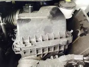 На корпусе воздушного фильтра будет четыре защелки - две впереди, одна справа и одна сзади справа. Освободите защелки от корпуса, отодвигая их от корпуса.