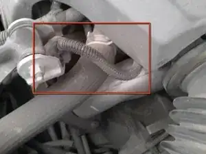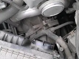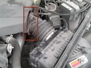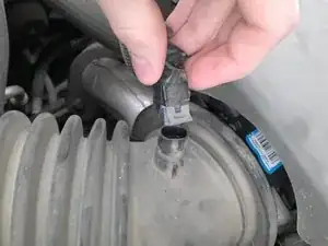 Прежде чем что-либо делать, необходимо отсоединить датчик, прикреплённый к впускной трубе. Датчик обведён на фото.