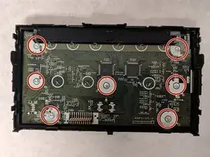 Удалите семь винтов Phillips #1 размером 11.2 мм с задней стороны передней панели стерео.