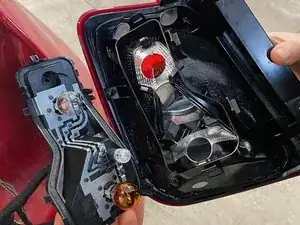 Используя лопаточку или что-то плоское, аккуратно подведите её между фонарём и кузовом и подденьте фонарь, чтобы снять его.