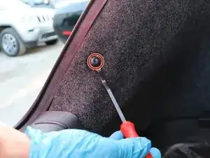 Удалите пластиковые крепления обшивки багажника с помощью инструмента для снятия крепежа.
