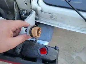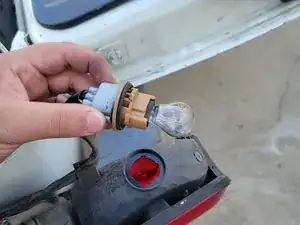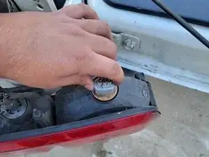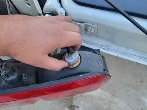 Вытащите сборку заднего фонаря из её посадочного места в кузове автомобиля.