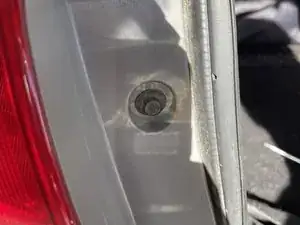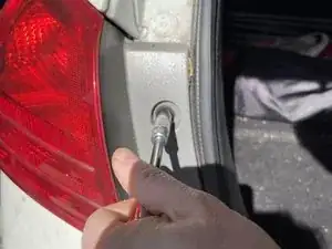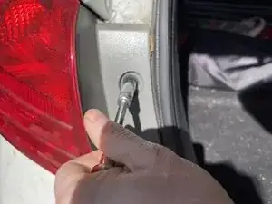 Откройте багажник и с помощью головки на 10 мм и трещотки ослабьте болт, удерживающий сборку заднего фонаря.