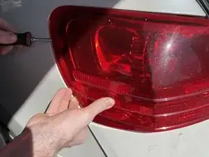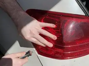 Вставьте плоскую отвертку в стык между корпусом заднего фонаря и кузовом и аккуратно отожмите каждый фикcатор.