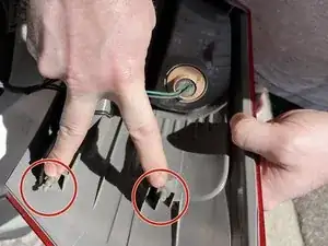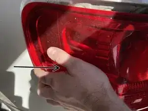 Стоя непосредственно сзади автомобиля, двумя руками потяните корпус заднего фонаря прямо от автомобиля. Если крышка не тянуть прямо, вы сломаете защелки, удерживающие крышку фонаря.