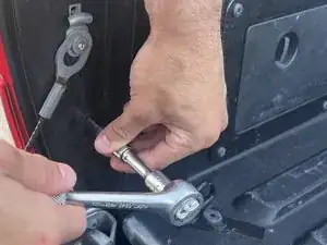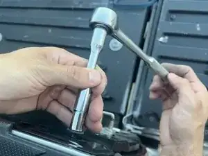 При помощи головки на 10 мм затяните четыре болта, чтобы закрепить корпус фонаря на кронштейне шасси.