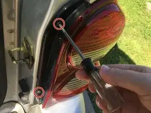 Используйте отвертку Т-20 Torx, чтобы открутить два винта, держущих крышку заднего фонаря.