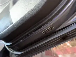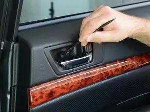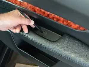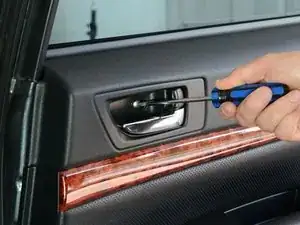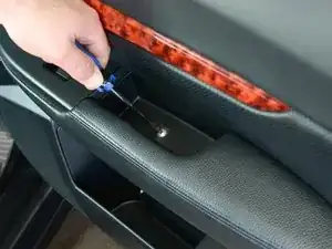 Используйте лопатку или плоскую отвёртку, чтобы открыть пластиковую заглушку винта, расположенную в подлокотнике двери.