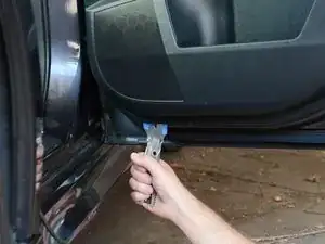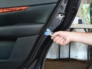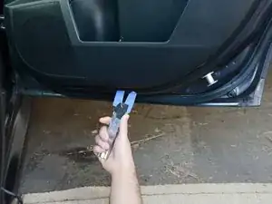 Вставьте инструмент для снятия дверной панели в выемку, расположенную на нижней части дверной панели.