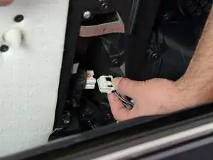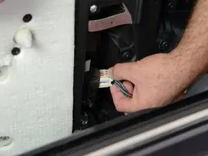 На нижней части дверной панели имеется ещё один разъём, который необходимо отключить.