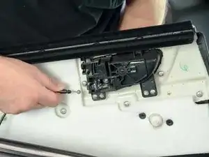 Отодвиньте пластиковую заглушку, чтобы открыть доступ к крестообразному винту.