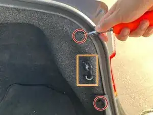 С помощью лопатки приподнимите два небольших фиксатора внутри багажника.
