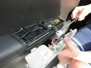 Удалите жгут проводов с панели, нажав на вкладки с боков большого белого пластикового разъема.