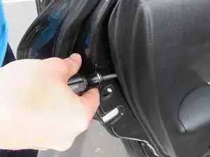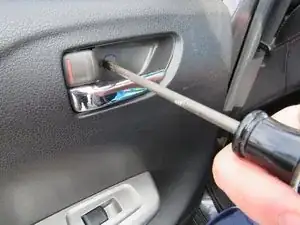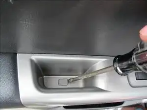 Используйте отвертку с плоским лезвием, чтобы приподнять пластиковую заглушку внутри подлокотника задней двери.