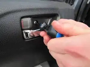 Используйте отвертку с плоским лезвием, чтобы снять и удалить панель над ручкой двери.