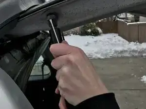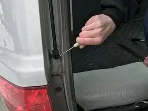 Теперь вставьте отвертку с плоским концом под зажим в нижней части амортизатора и поднимите зажим до полного снятия.