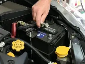 Отведите клемму массы в сторону так, чтобы она не могла случайно соединиться снова или коснуться положительной клеммы.