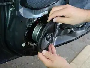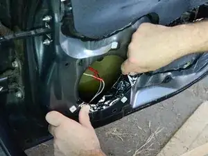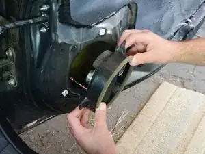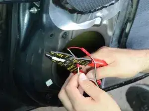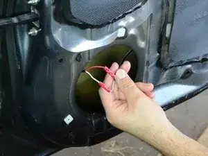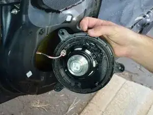 Осторожно оттяните динамик на 2–5 см от двери, чтобы обнажить провод и разъём на задней стороне динамика.