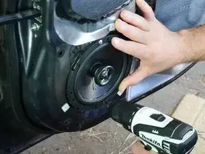 Альтернативно, вы можете сначала отметить все отверстия, затем снять динамик, просверлить направляющие отверстия и снова установить динамик, закручивая все четыре винта. Только убедитесь, что каждый винт затянут вручную, а не с помощью электроприбора.