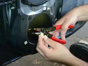 Используйте кусачки для проводов, чтобы отрезать заводской разъём динамика от остальной проводки. Оставьте немного провода на стороне разъёма, на случай если вам когда-нибудь понадобится снова подключить его к проводам.