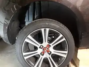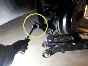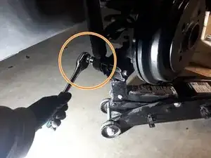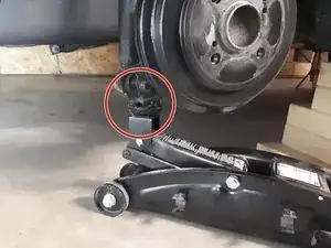 Поставьте домкрат под рычаг колеса и позвольте домкрату нести вес рычага, но не поднимайте рычаг.